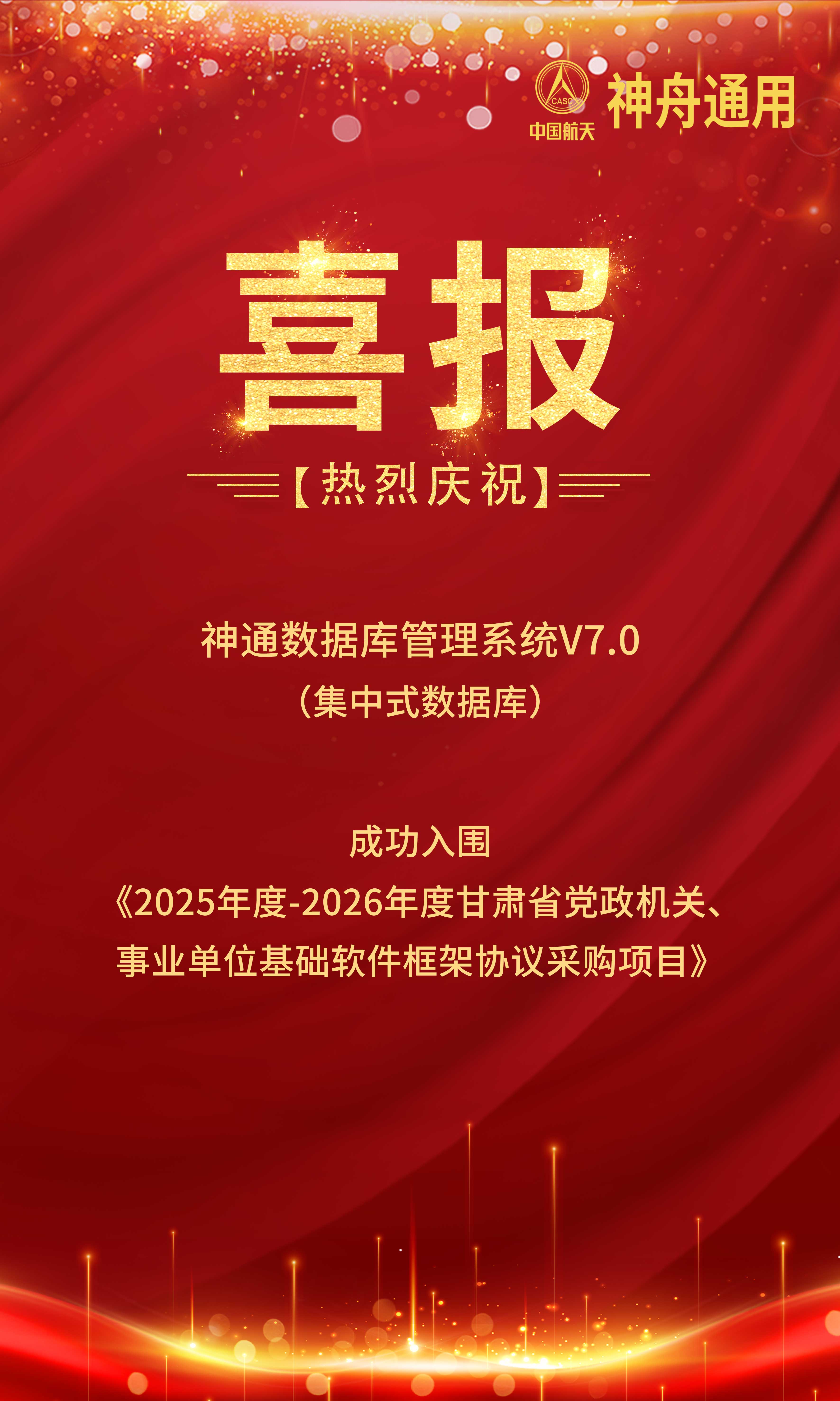 神通数据库入围甘肃省党政机关、 事业单位基础软件框采项目